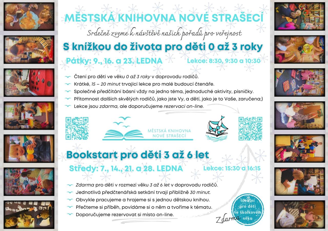 Pro vaše dítka od tří do šesti let připravujeme vždy ve středu dvě po sobě jdoucí lekce Bookstartů pro děti ve věku 3 až 6 let. Tentokrát je můžete navštívit 7., 14., 21. a 28. ledna. První lekce startuje v 15:30 a druhá v 16:15. Zaměřujeme se vždy na čtení jedné dětské knihy, povídáme si o důležitých tématech spjatých s příběhem a na závěr si vždy vyrobíme nějakou drobnost.